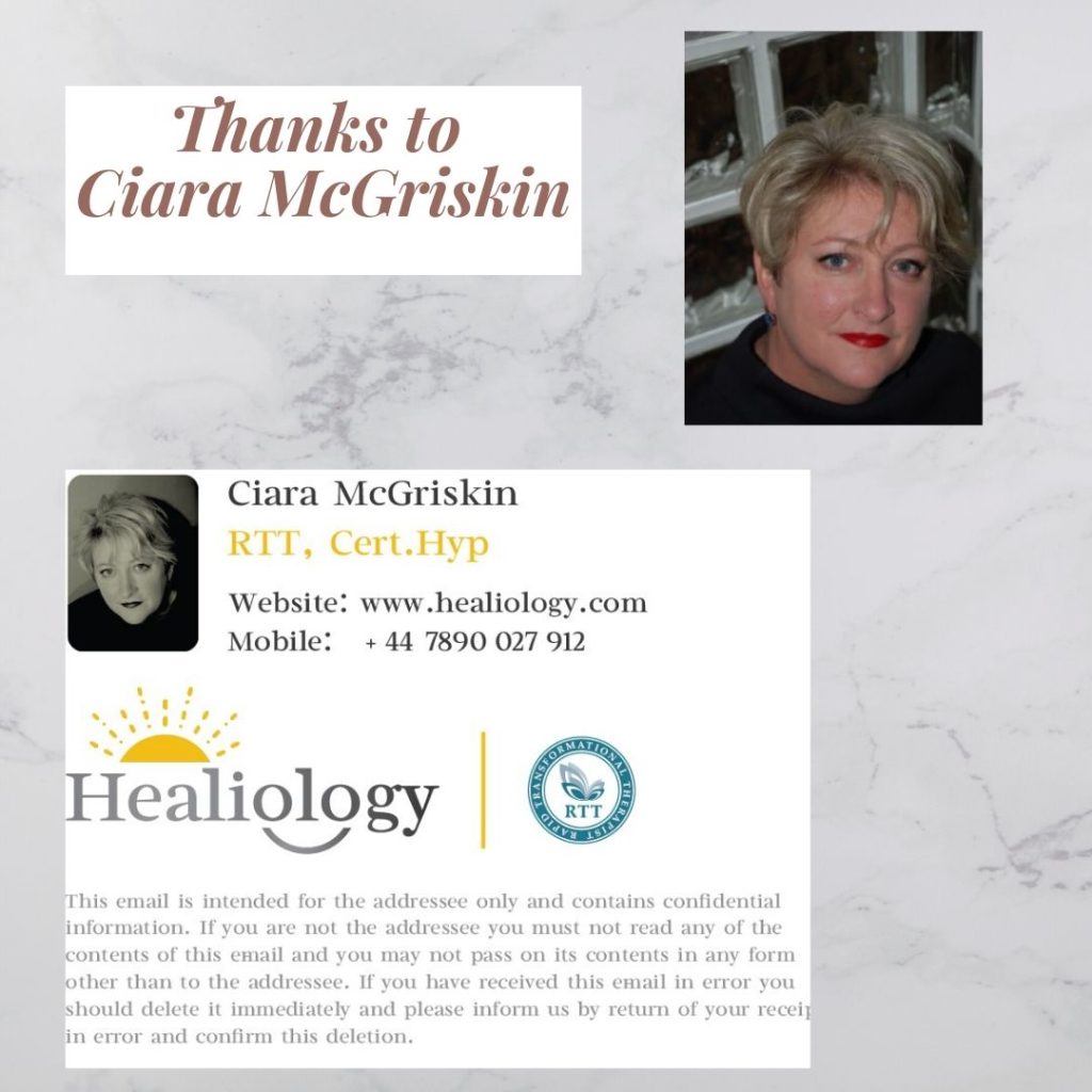 Join me this week as I talk to Ciara McGriskin of Healiology who is a Certified RTT Therapist. In her work, Ciara is trained to deliver transformational therapy to free a person from the limiting beliefs and behaviours that are holding them back from creating the happiness and success they deserve.